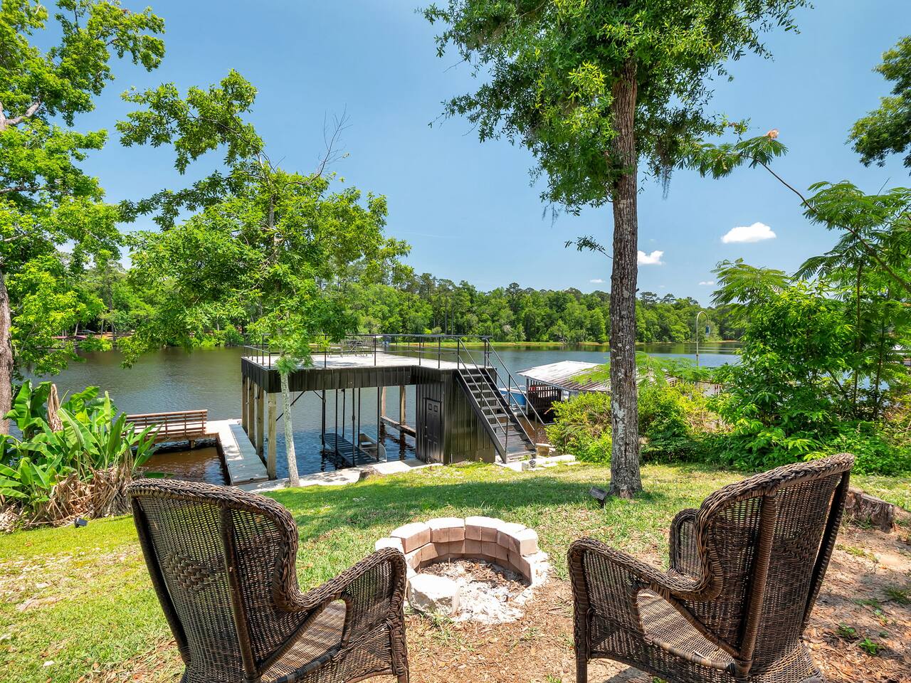 ➔ 2 Complimentary tandem kayaks with paddles ➔ Deck with patio furniture, propane fire pit, and charcoal grill ➔ Double decker dock with 180° view of the lake ➔ Fully equipped kitchen w/ coffee bar ➔ TV with Roku ➔ Wood fire pit ➔ High speed internet - 1000 mbps ➔ Plenty of parking for your vehicle and boat trailer ➔ Safe and quiet neighborhood ➤ 3 min to Blount Landing ➤ 25 min to Doak Campbell Stadium ➤ 30 min to Donald L. Tucker Civic Center